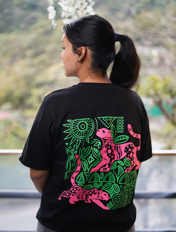 A tribute to the king of the jungle, the ‘Majestic Majesty’ lion tee is a symbol of courage and strength. This powerful design is crafted by artist Kshipra to inspire confidence.