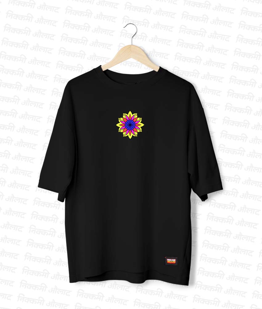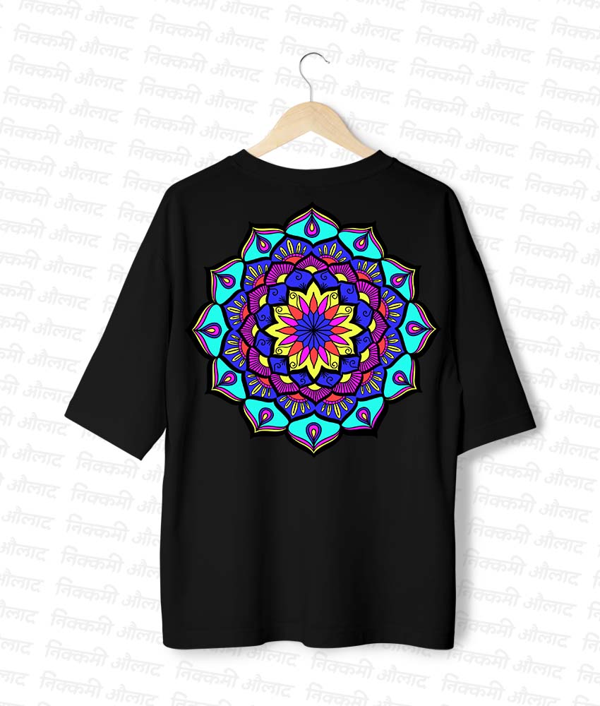 Ignite your style with the ‘Fire Flower Mandala’ oversized tee. A dynamic design by artist Preeti Gandhi that combines the fierce energy of fire with the delicate beauty of a floral mandala.