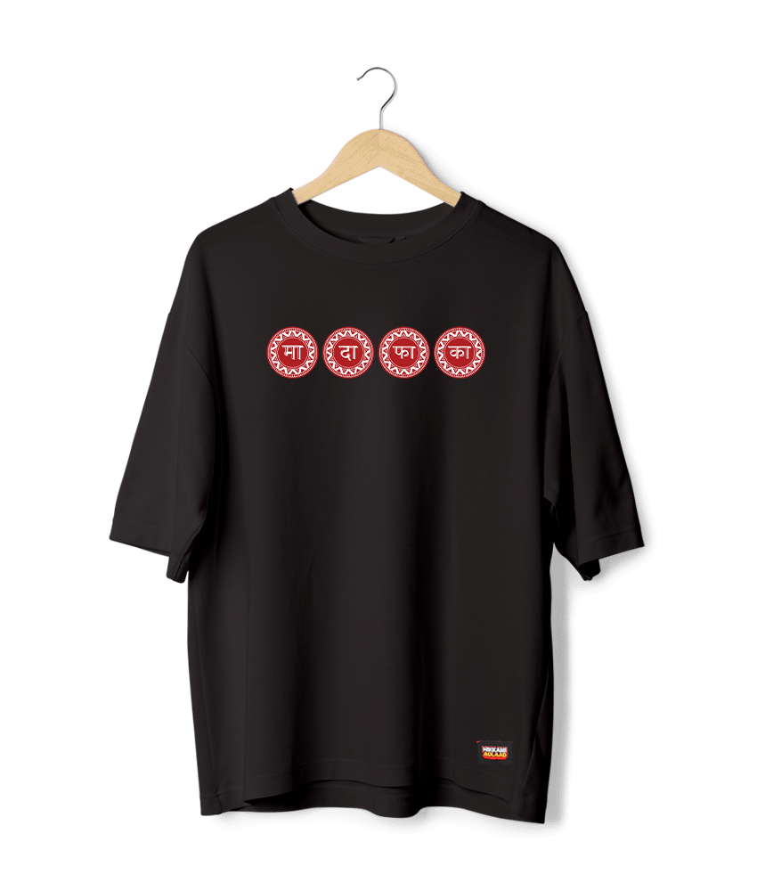 For those moments when you need to make a statement without saying a word. The ‘Ma-Da-Fa-Ka’ Hindi Oversized T-Shirt is a bold, edgy, and unapologetic piece of typographic art by Akshita, giving a desi twist to a universally understood sentiment.