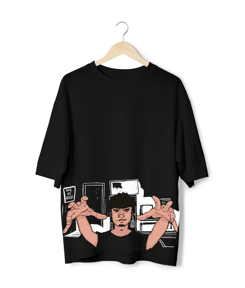 A magical twist on a classic phrase, the ‘Mard Ka Bacha – Jaadugar’ Oversized T-Shirt is for the man who creates his own magic. This powerful design by artist Unmesh aka Gilheri is a statement of strength, wit, and a touch of the mystical.