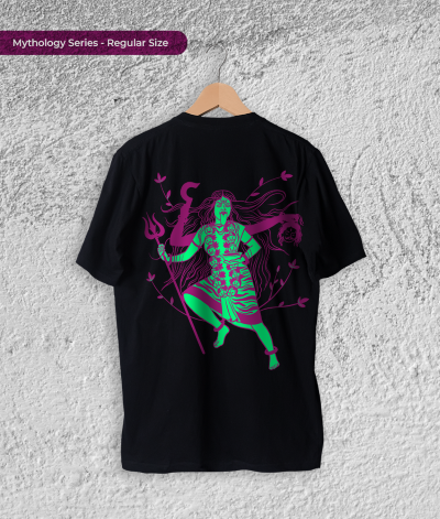 Unleash your fierce side with the ‘Kali’ graphic tee by artist Kshipra. This powerful design captures the untamed, divine feminine energy of the goddess Kali in a bold artistic statement.