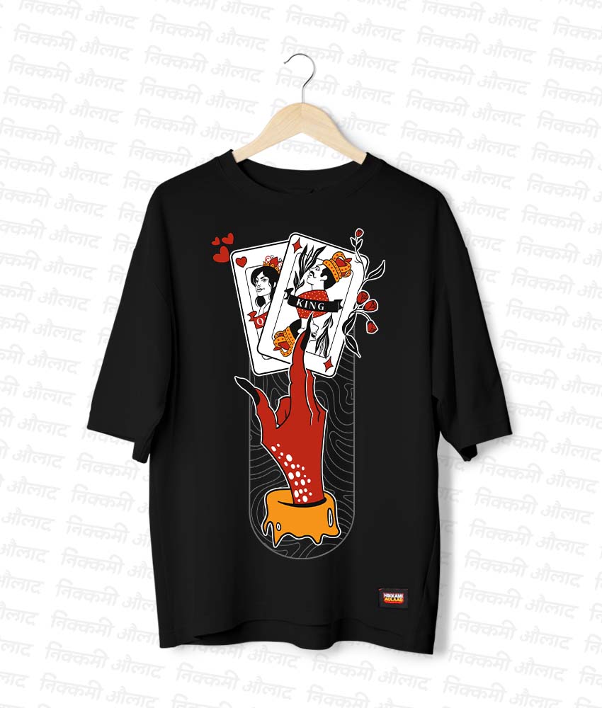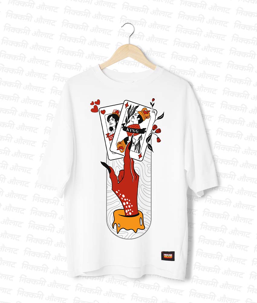 Embrace your mischievous side with ‘The Devil’s Play’ oversized tee. A chaotic and playful abstract design by artist Kshipra that finds the fun in a little bit of trouble.