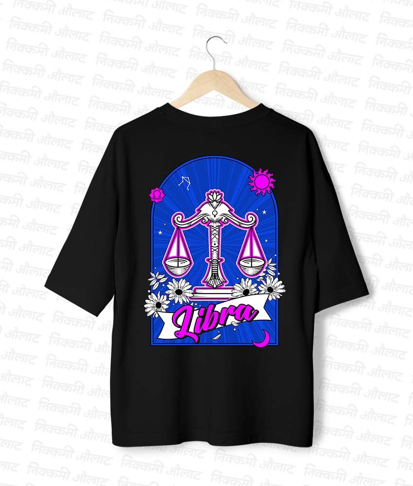 Find your balance with ‘The Harmonizer’ Libra oversized tee. An elegant design by artist Nayna that captures the grace, charm, and sense of justice of the celestial scales.