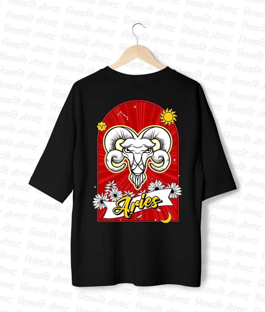 Lead the pack with ‘The Pioneer’ Aries oversized tee. A fiery and energetic design by artist Nayna that embodies the bold, ambitious, and trailblazing spirit of the celestial ram.