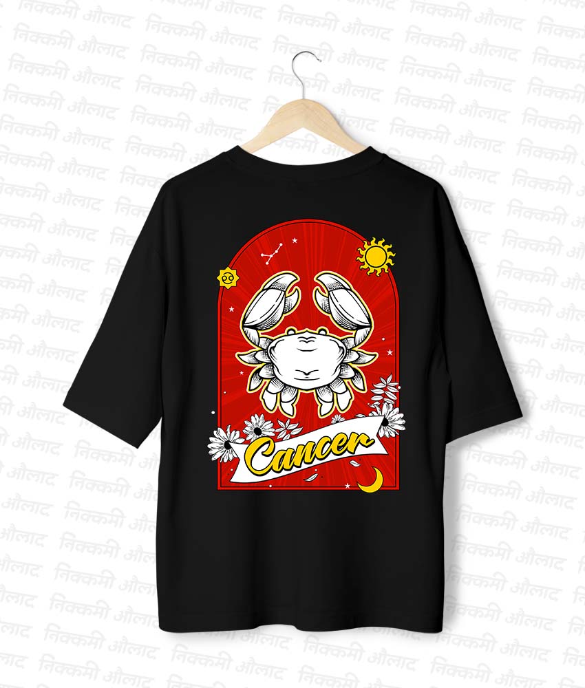 Embrace your intuitive and nurturing soul with ‘The Protector’ Cancer oversized tee. An artistic tribute by Nayna to the loyal and compassionate heart of the celestial crab.