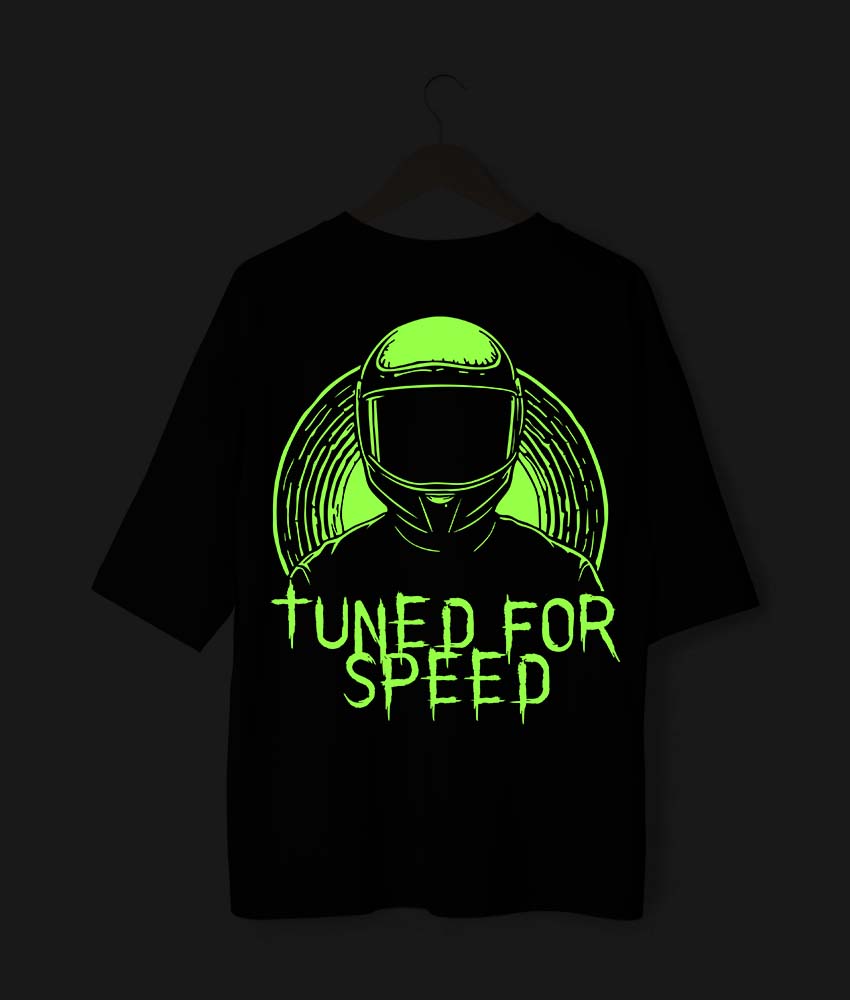Engineered for the fast lane. The ‘Tuned for Speed’ oversized tee by Kapil is an abstract tribute to automotive power and precision, featuring a design that glows like a tachometer in the dark.