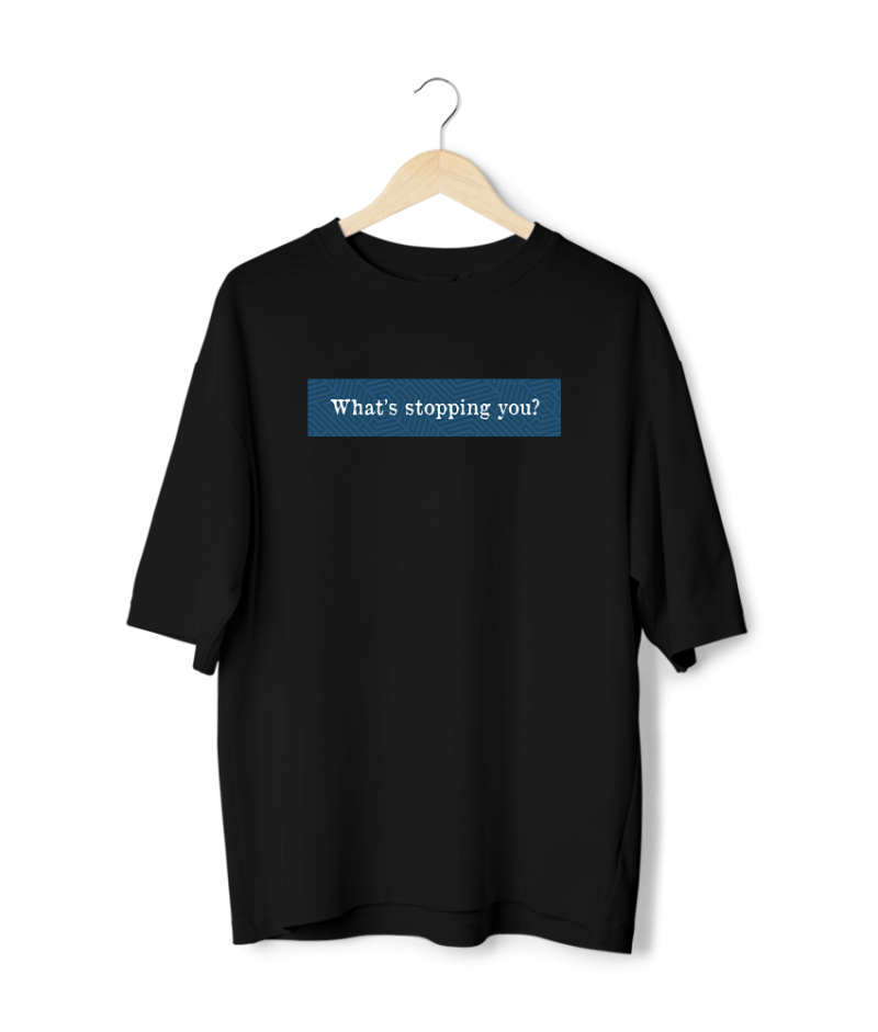 Make a bold statement with the ‘What’s Stopping You?’ oversized tee. A motivational and edgy piece of typographic art by Akshita that challenges you to break barriers.